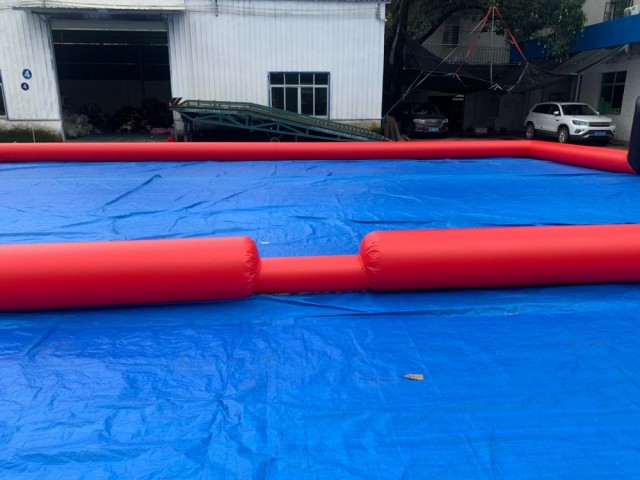 Denne banen er designet for å tåle intens bruk og er et fantastisk tillegg for idrettslag, skoler, eventarrangører eller private som ønsker en enestående opplevelse. De solide 50 cm høye kantene sikrer at ballen holder seg inne i spillet, og de skaper en trygg ramme for alle deltakere. Med en tykkelse på 0,55 mm PVC er du sikret et produkt av høy kvalitet som vil vare sesong etter sesong. Og med en totalvekt på kun 75 kilo, er den relativt enkel å transportere og sette opp, slik at moroa kan begynne raskt!